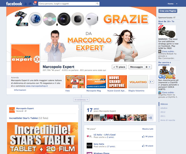 La pagina Facebook, consultabile al link www.facebook.com/marcopoloexpert, dedica ai propri fan contenuti esclusivi con un piano editoriale dedicato, oltre ad offerte e promozioni riservate.